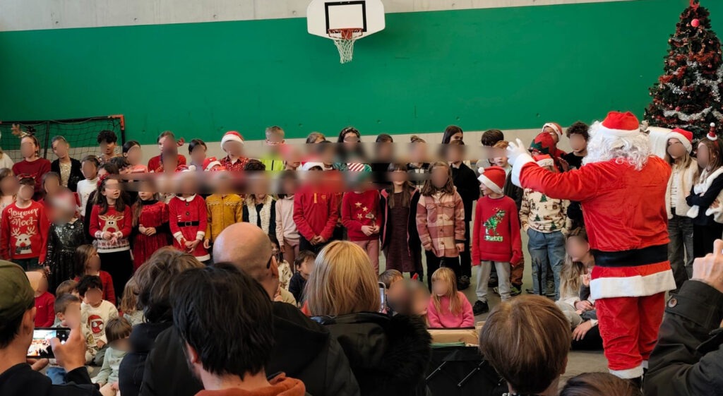 Dans la foulée, le Père Noël a poursuivi sa tournée en se rendant à l’école du Soleil, où les élèves de primaire l’attendaient avec impatience. Là aussi, il a pris le temps de distribuer les cadeaux de Noël, partageant sourires et moments de complicité avec les enfants.