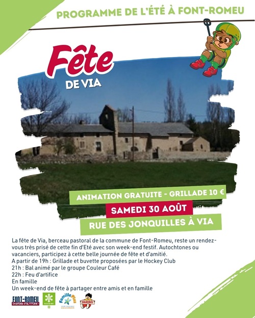 La fête de Via, berceau pastoral de la commune de Font-Romeu, reste un rendez-vous très prisé de cette fin d’Eté avec son week-end festif. Autochtones ou vacanciers, participez à cette belle journée de fête et d’amitié.
