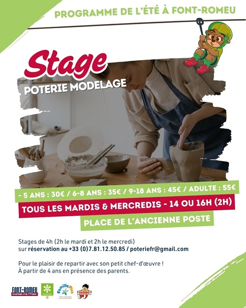Stages de 4h (2h le mardi et 2h le mercredi) sur réservation au