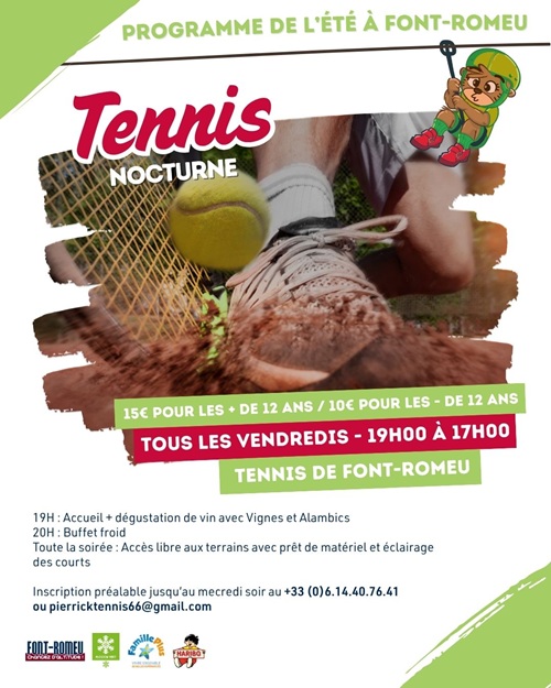 15€ pour les + de 12 ans / 10€ pour les – de 12 ans. Inscription préalable souhaitable au +33 (0)6.80.90.04.36 ou pierricktennis66@gmail.com.